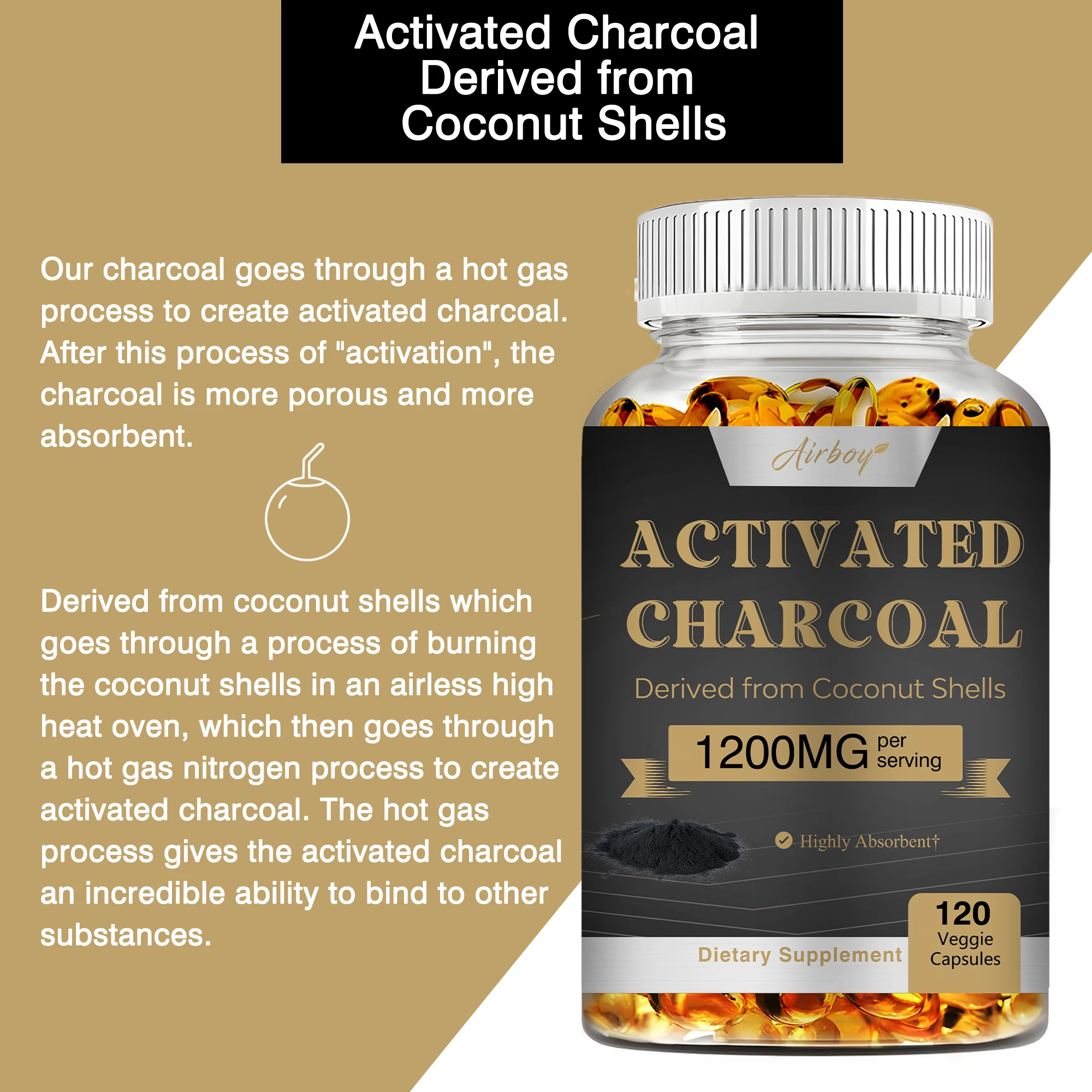 Activated Charcoal - Gut Health, Digestive Health, Bloating & Gas Relief, Detox, Colon Cleansing - 120 Capsules